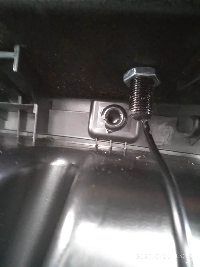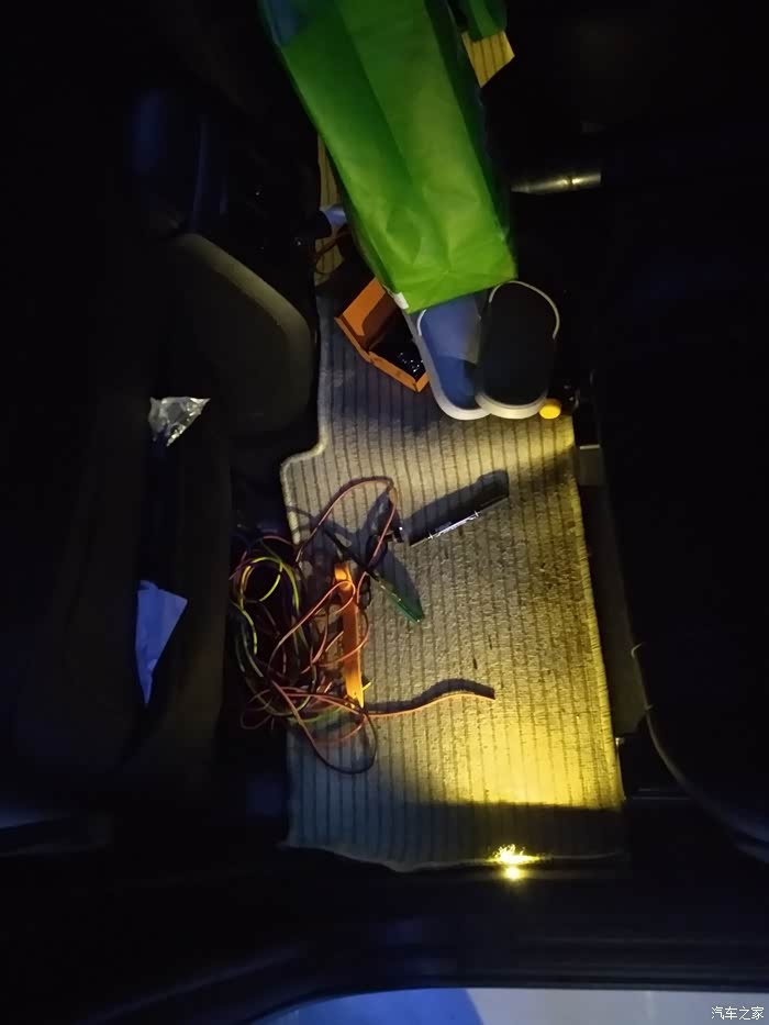 穿好线后,从B柱往下经过门槛走到驾驶座底下,所有的线汇聚到这里,前阅读灯并接一条线从A柱那里走下来,然后和照地灯的线接好,用扎带绑好就OK了!