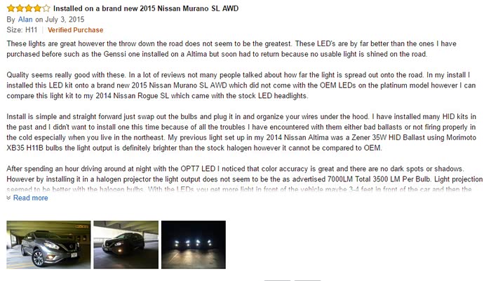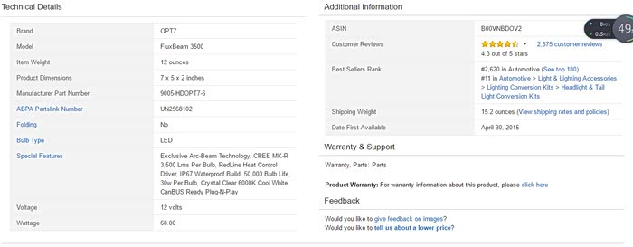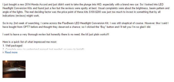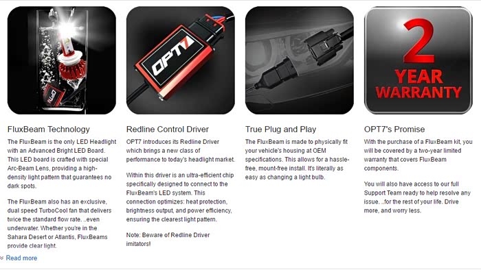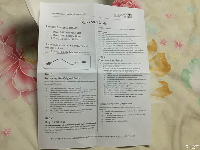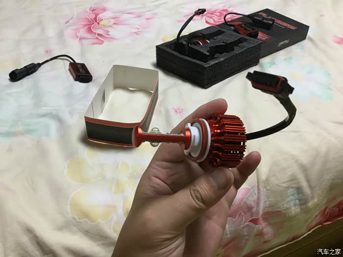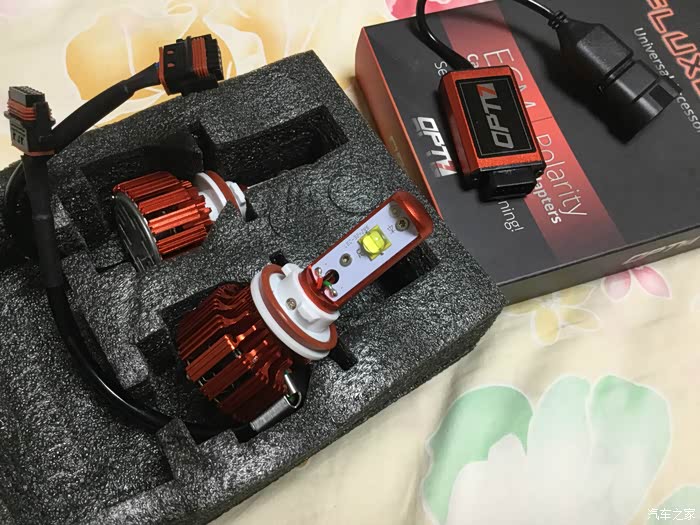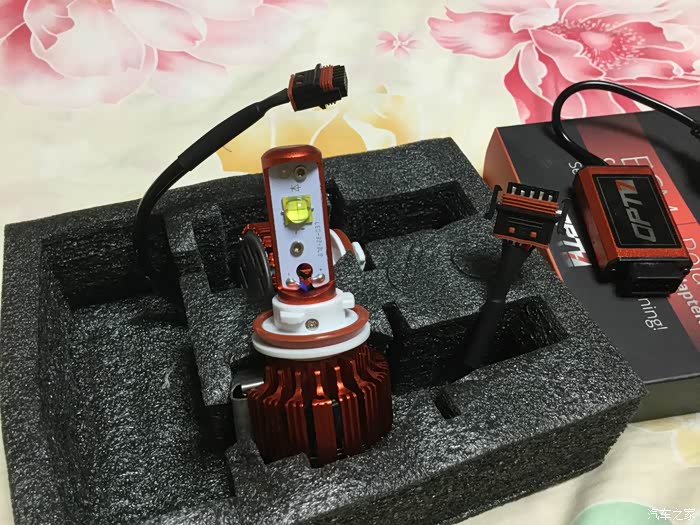 期间开了几次夜车,灯光太暗了,尤其北京京港澳中间没有树木隔离,哎呦,再加上近视 夜里更是难受,也看了论坛里几个改灯的方案,双光透镜 氙灯,但是都得拆 了再密封,想到拆车我就忐忑了。然后研究LED,刚开始在淘宝研究,发现都不怎么样,有点水。忽然有一天开窍了,咱不是经常海淘嘛,然后逛了德亚、日亚、美亚,找相关的LED大灯替换产品。德亚的有飞利浦灯珠,日亚忘了,到了熟悉的美亚,发现了一款LED大灯在销量里排名还不错,客户反馈也挺好,然后就深入研究了下,就是OPT-7这个牌子的LED,号称能在水下连续工作,这下就不怕进水了。哎 思绪已经紊乱了。下面直接上图了