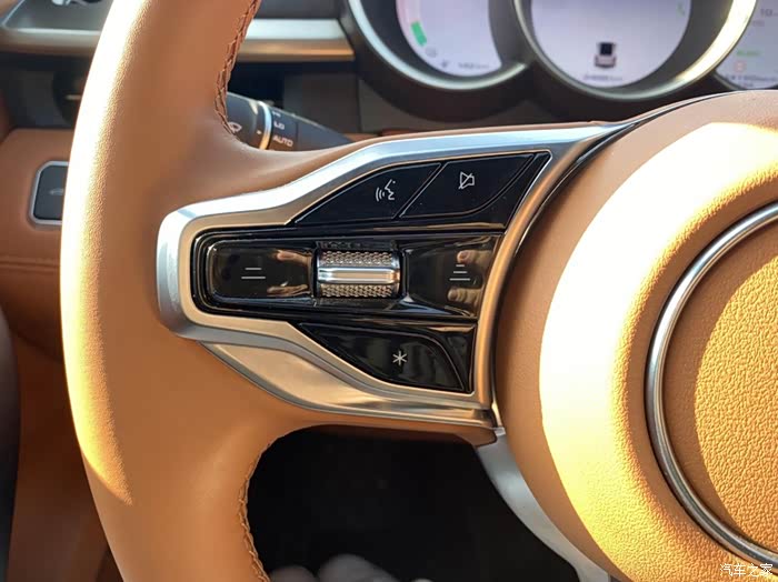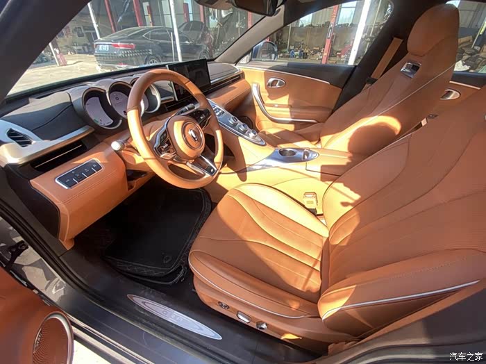 前排座椅是一体式设计,使用皮质包裹,坐感扎实,提供良好的支撑。椅背与身体贴合,长时间坐下也不会感到疲劳,主驾驶的头部与车顶之间还有20公分的距离,腿部空间也足够自由活动,车内宽敞舒适。配置和材质方面,也没有太大问题,这个价位的车,大面积的真皮包裹应该是基本的,棕色的内饰配色,整体感觉也还行。