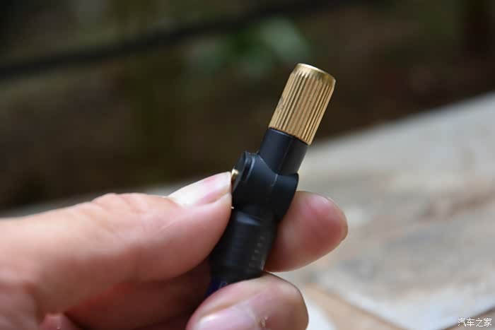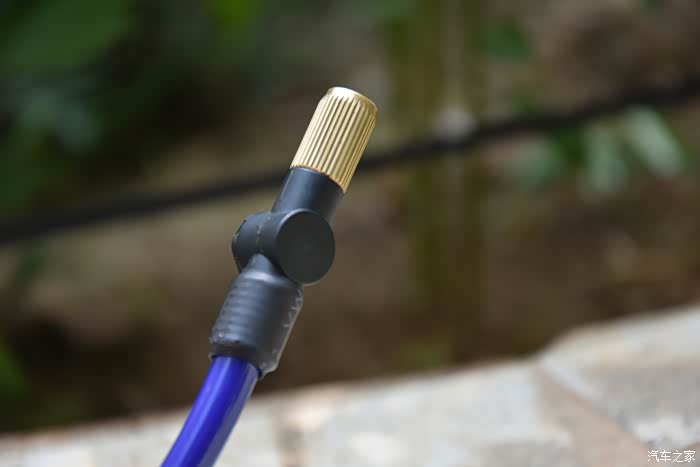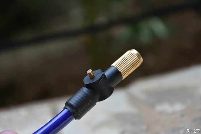 充气嘴是金属头,同时还带有一个排气按钮,如果胎压太足的情况下,可以通过它来放气