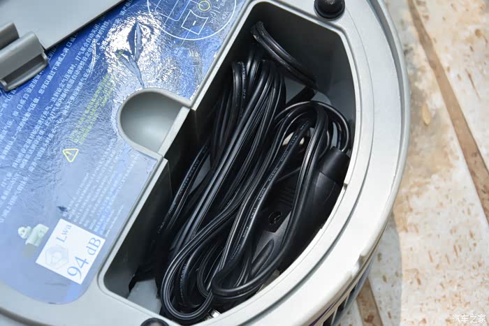 从储物盒外面的标识可以看得出来,里面是存放着电源线还有充气嘴