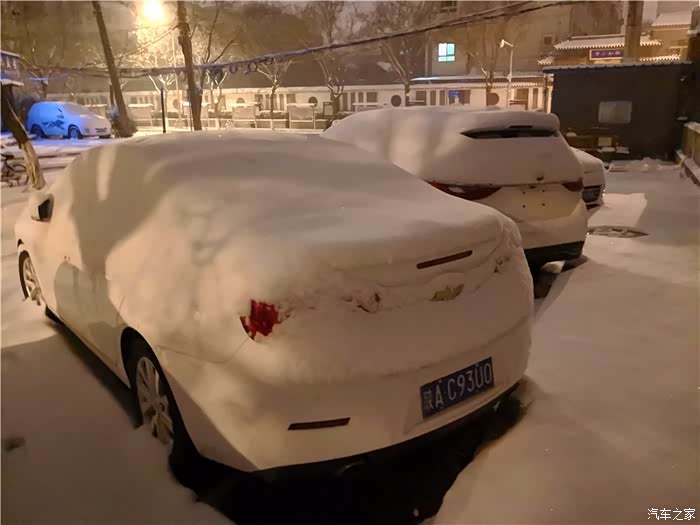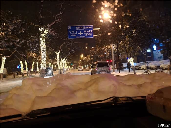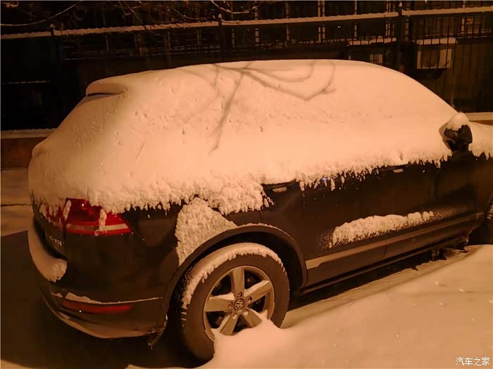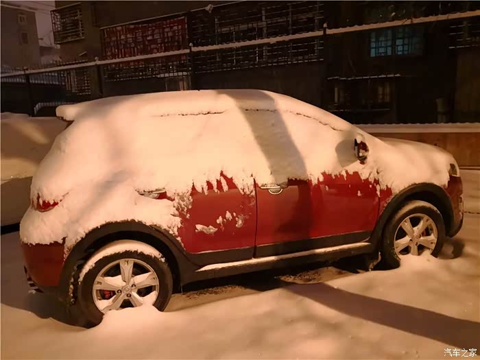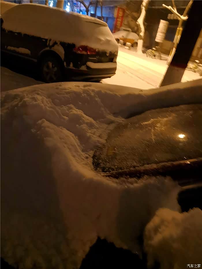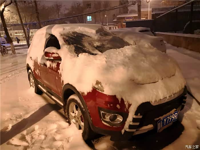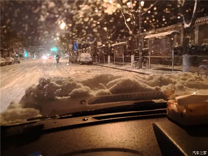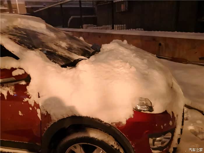 引擎盖上的雪好厚,快挡住视线了!