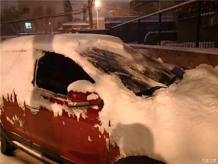 平时十几分钟的路程,今天早上开了近40分钟,车上的雪并没有掉多少!