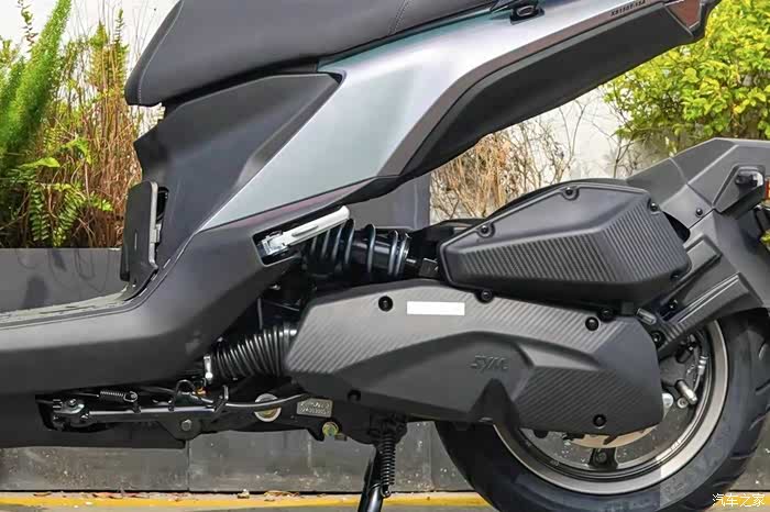 从该博主公布的视频中我们可以看到能够判断车型的两个重要细节,下图中我们可以看到左侧图片上传动箱内有SYM的字样,也就是可以确认就是三阳的车型无疑。右侧的图上我们能够看到,这台车采用侧置减震的设定,而且右图左上角略微能够看到后脚踏部分的造型。