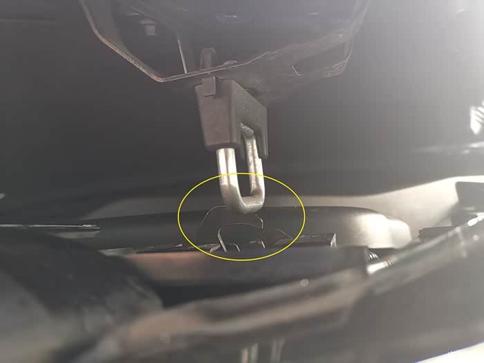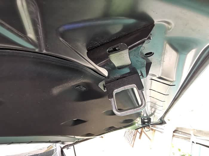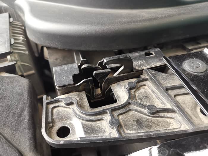 等忙活完之后,关闭机盖时用力向下一拉,却发出了 “咣当”一声,坏了,前机盖关闭不上了,仔细检查了一下,是右边的卡齿位置不对,导致机盖上的挂钩无法卡上。