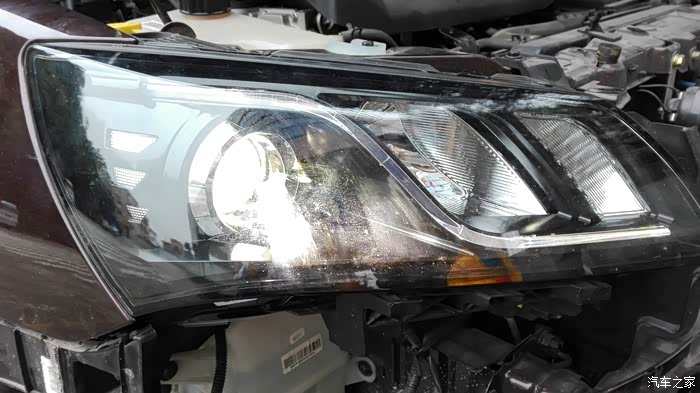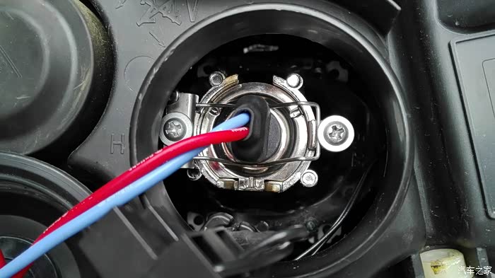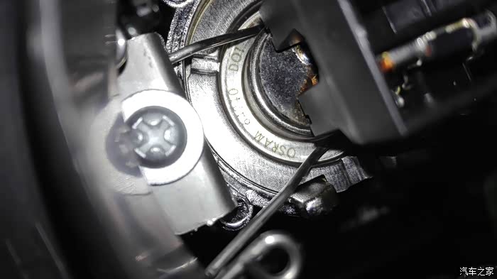 因为是白天,所以没能看是否切线对齐,不过这个也是多余的,因为本来我们的近光透镜是固定的,所以就算切线不齐也不能调节,只要灯泡装好了就可以(灯泡装好以后要仔细检查一下,因为里面的扣子不好搞,装的时候容易走位,导致灯泡没能灯杯的中间,我的左边就是这样,搞的又要重新拆卸护杠把灯泡装好)