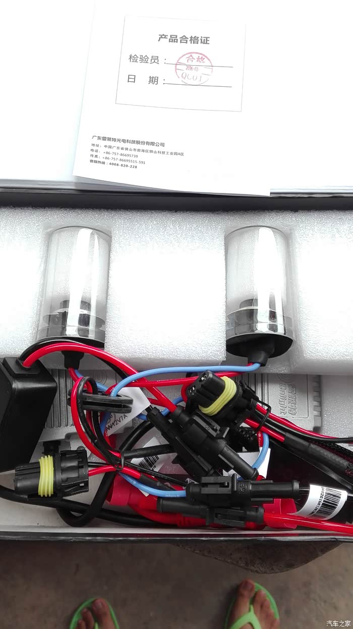 第三换氙气灯,上面我说过最直接有效就是换个卤素灯泡,为毛线还会选择这么麻烦的氙气灯呢?什么技术成熟,效果明显,这些都是扯谈,其实说白了就是为了装B(兄弟们,请原来我的诚实吧。。。)因为在远处看见人家的高级车型白光灯那么的帅气而又不耀眼,心里总感觉有点羡慕吧(人嘛,有点羡慕之心是件好事,因为这个也是让你不断前进的动力,最起码我是这样想的,不喜欢的兄弟可以点击你手机的返回键或者电脑屏幕右边的×),再加上LED灯通用技术不成熟,唯一的选择就是氙气灯了。正好过年的时候某宝的雪莱特旗舰店搞特价,所以就买了套回来,趁着过年放假就把灯给改装了(这里要感谢我的大舅子,因为本人动手能力特差,每次都是他来帮忙的)
