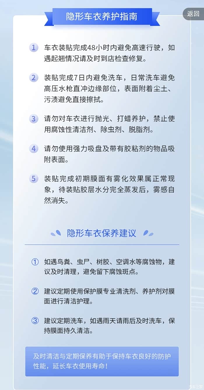 贴隐形车衣,一定不要急,当天贴当天走人的,不利于封边,很容易后期还要进行返工,更浪费时间,所以准备贴车衣的,要预留2天时间给师傅是最好的,可以慢慢处理,并且做好封边。