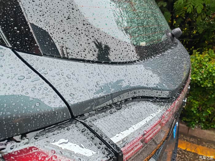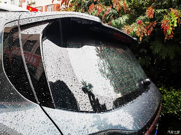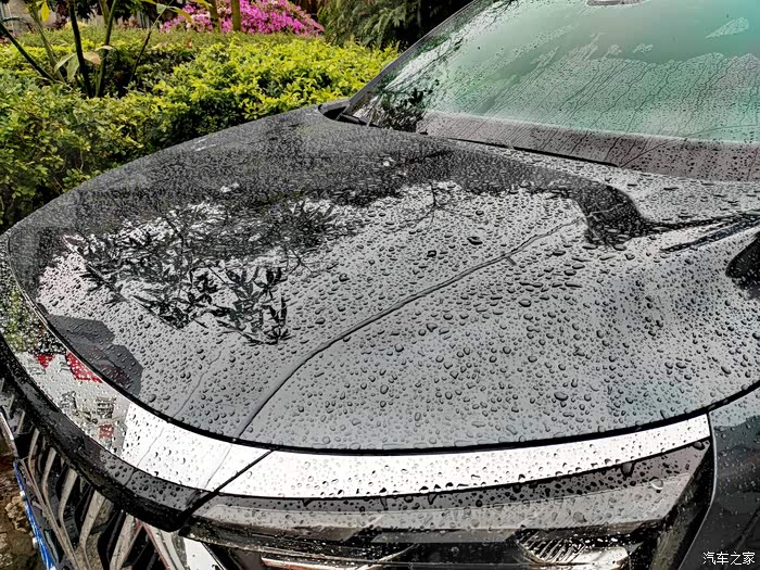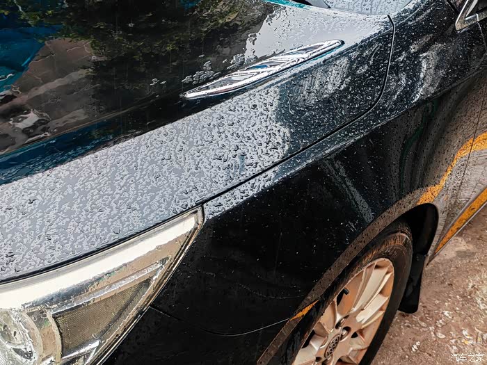 没有打蜡,也没有车衣,雨水基本在漆面流成一片。