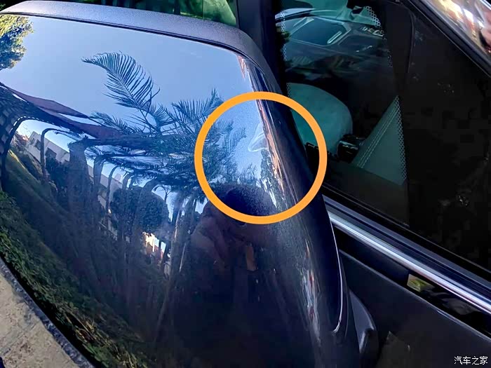 这是另外一个地方,后视镜曲线大,两边都翘起了,好在处理了下,不太影响美观。