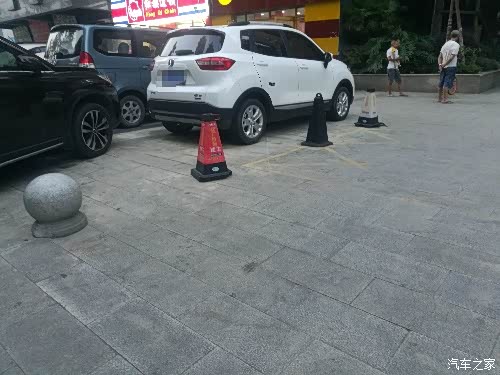 小区门口停车场,停了一辆白色的CS15,在停车场众多的车辆中,白色的CS15看上去最耀眼。