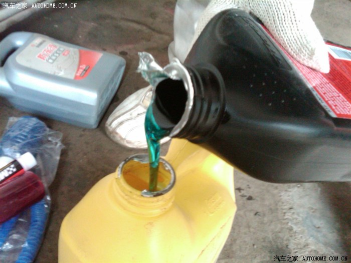 下面是就是我更换时候的图片了,我就拍了这几张,效果一般,一共是2L+50ML。都倒进去了没有剩余。