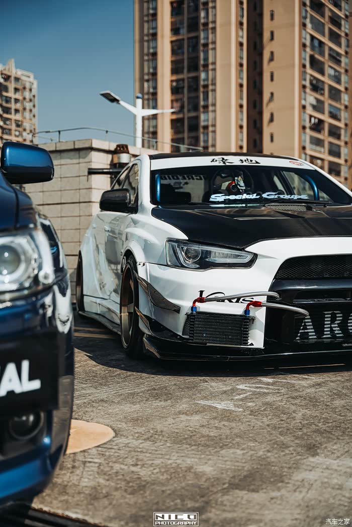 这辆白色evo10的改装同样也是可圈可点,这竞技宽体也是真舍得切啊