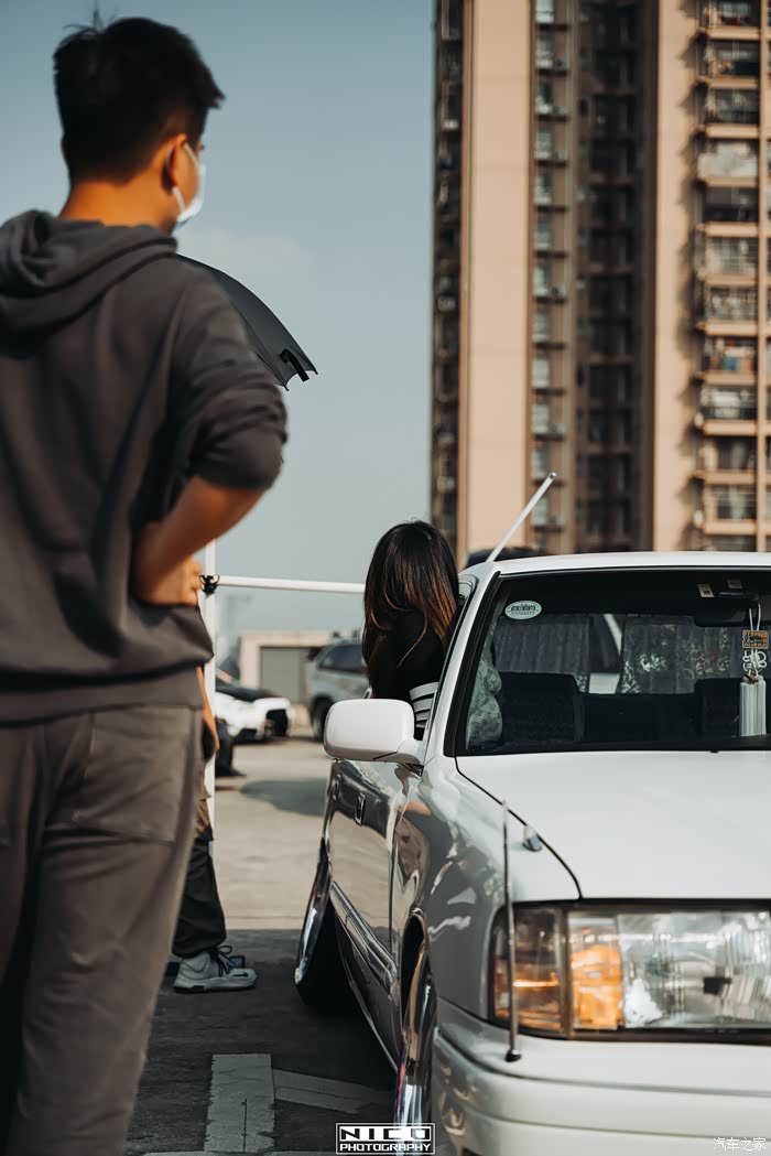 在中途返回车内更换镜头并且稍作休息的时候,身边停着的皇冠车突然前来搭讪,看着自己身上一身的装备,询问是否能帮他的爱车留影几张。