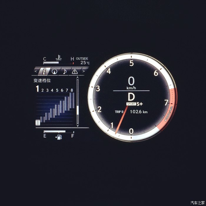 普通模式,平常开这个模式已经很给力了。仪表分辨率比我想象中清晰,指针可以调3种颜色。速度提示设置了后超速了圆圈中间会有两个黄色的提示一闪一闪,很过瘾,不知道中国版有没有。