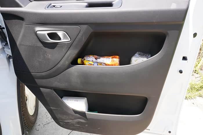 先看外观,方方正正的造型,简洁大方,白色车身加黑色侧裙和尾门饰条,耐脏又显精神,开出去送货,辨识度挺高。