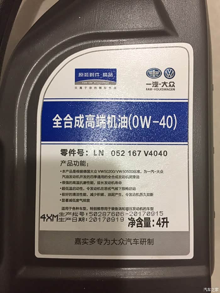 现在脱保几个月了,一直都在4S店做的保养都是用的嘉实多尊护0W-40全合成机油(价格4L550元、1L140元)。