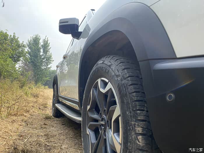 熏黑的轮眉配合全地形的轮胎,就知道它的越野能力很强。