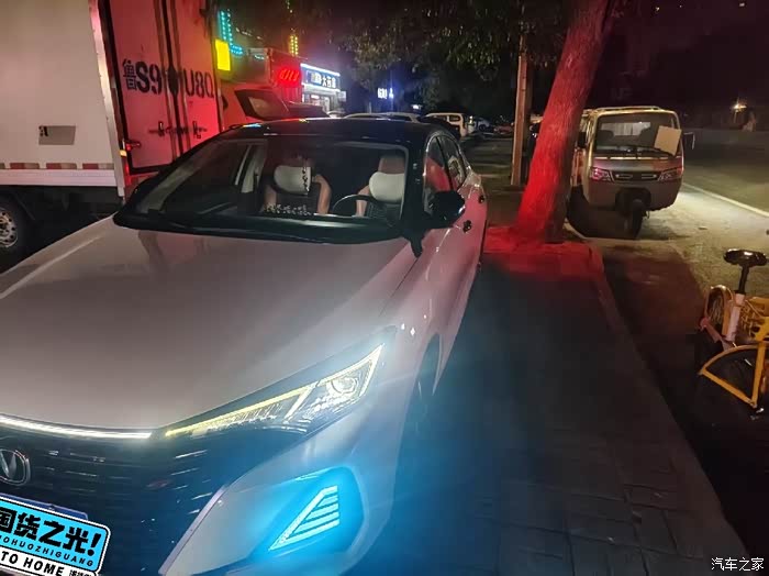 我是逸动PLUS的车主,曾经的梦想是想有一辆属于自己的车子,20年的时候拥有的自己的首辆车逸动PLUS。当时买这款车的时候落地9万多,虽然比现在的价格要高很多,但是当时确实是喜欢上它的内饰和外观设计了,选择的是白色车身的一款,前脸格栅式设计,尽显年轻运动效果,但是唯一的一点不足就是前脸没有氛围灯,车身比较单调。平时喜欢浏览一些车辆改装的视频,还有就是在某宝上寻找一些关于车辆配件的产品,也是一时脑热吧,就把车身贴上了自己喜欢的卡通车贴。再就是做了一项大工程,将前脸保险杠两侧加装了一组三色氛围灯,那种效果可想而知,气氛效果感拉满了。在夜晚的衬托下,那种三色变换的效果也是回头率拉满。