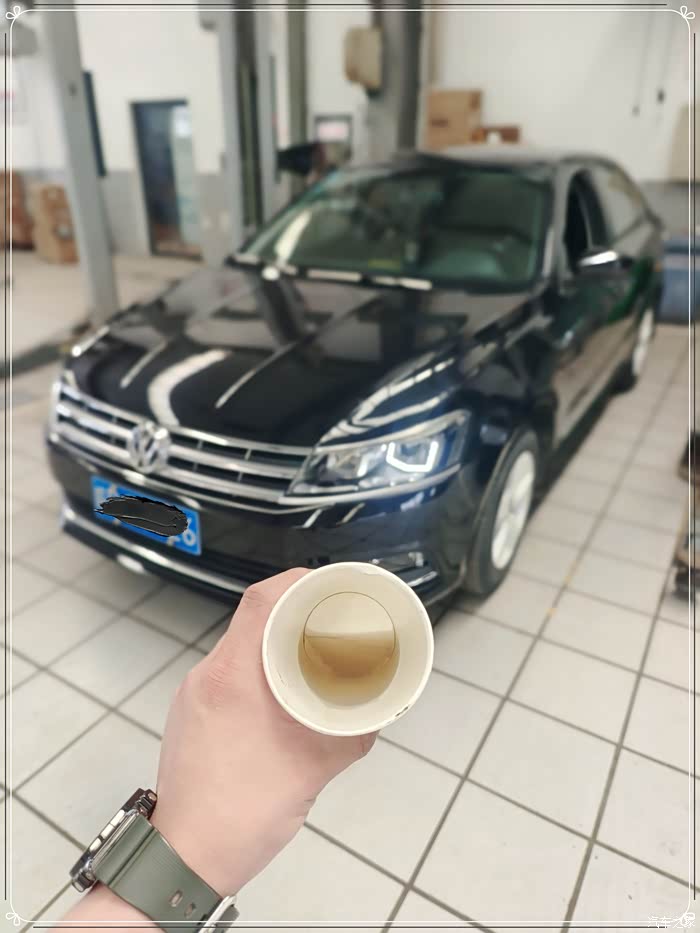 接着咱们来看看,更换后的汽油滤芯内部的汽油情况,将残留的汽油倒入一次性杯子内,可以看到杯子内的汽油杂质情况,你现在觉得这个汽油滤芯的更换有无必要呢?