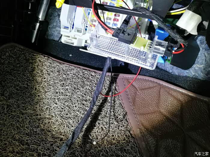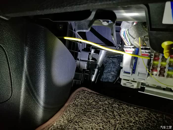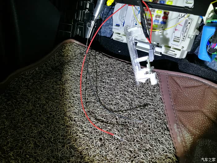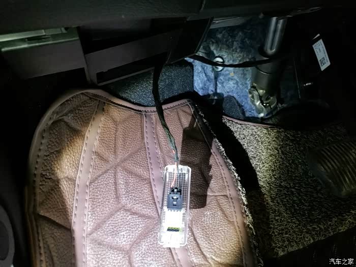 首先用一根硬点的引线从驾驶位油门踏板边上图中位置传到副驾驶去