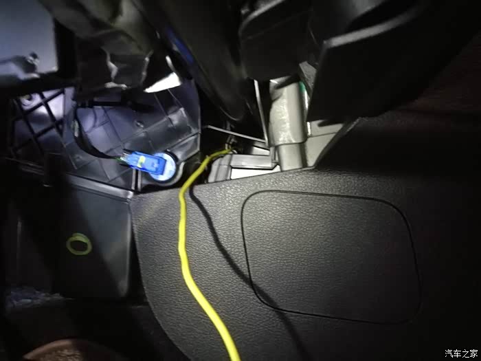 然后是驾驶位,跟副驾驶一样把后排的延长线穿过预留的安装孔