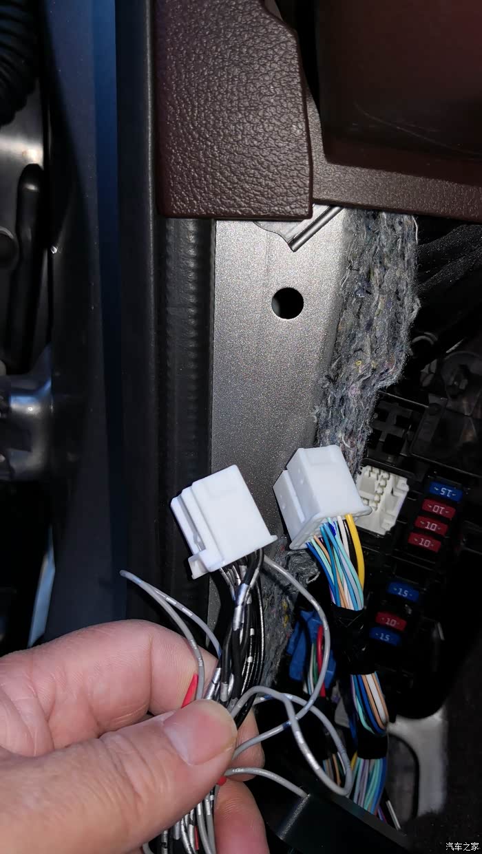 然后把升窗器的另一个插头***前面拔下来的插口中,整个线束的连接已完成。