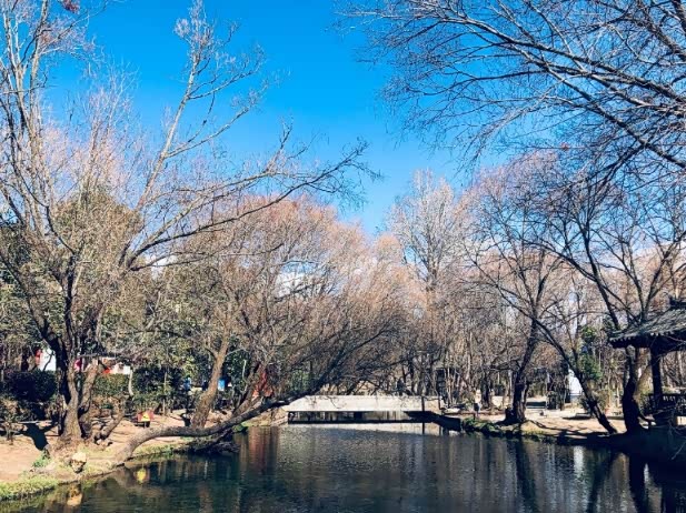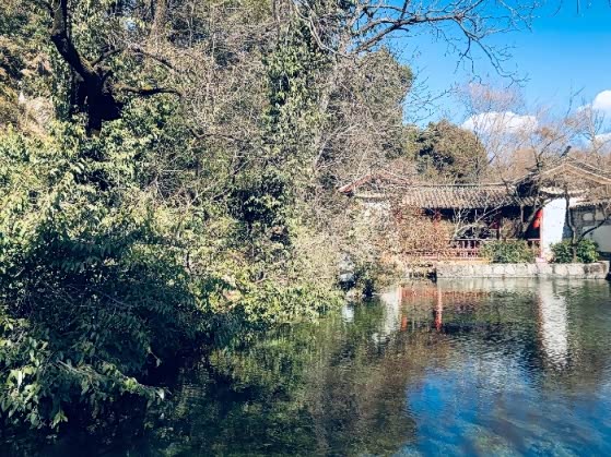 束河的风景很美。我们住的客栈旁有一条小溪穿过,溪边有一条石板路,路边有柳树和核桃树。不远处架着一座小桥,桥是用木块和铁链组成,走在上面摇摇晃晃的,好像一不小心就会踩空似的。