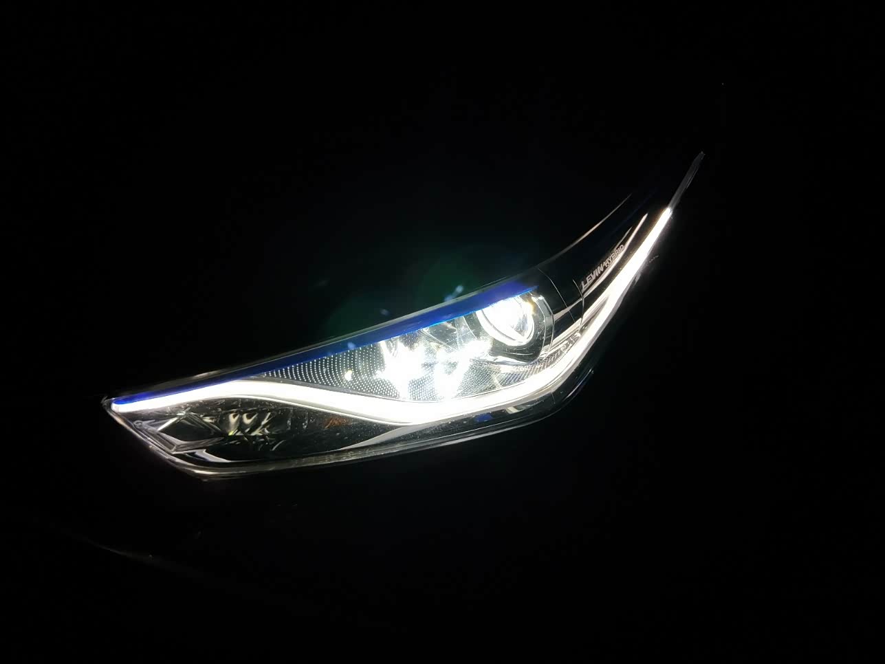 车的LED日间行车灯是条带的,不是一条线,而是贯穿整个车灯,很是好看和明显,比一个一个小灯的LED日间灯更容易被人识别到,安全。