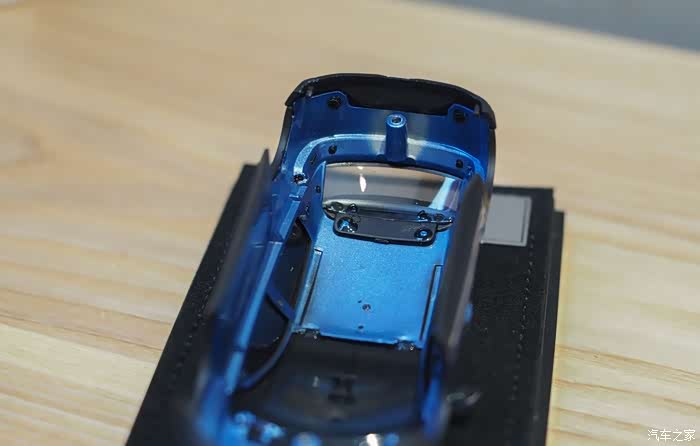 小鹏G3模型外壳采用了金属材质,全景挡风玻璃上方做了一层熏黑处理,这个细节值得点赞。