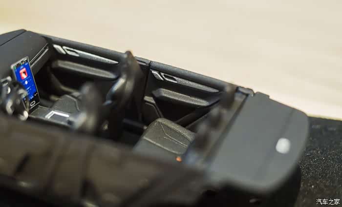副驾上,实车上的贯穿式出风口设计似乎在模型上没有得到完美还原,模型上出风口旁的金属镀铬设计似乎被忽略了。