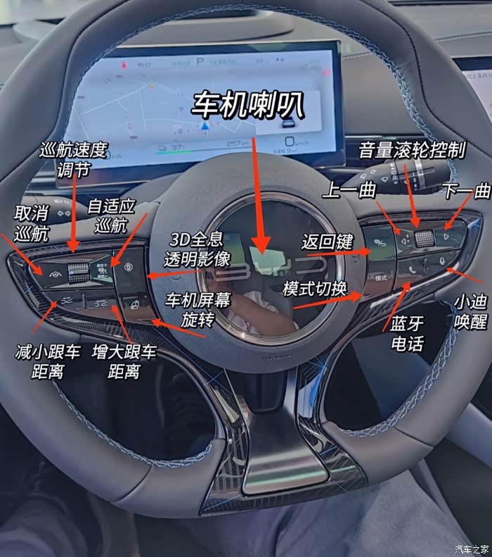 先来按键说明,很多提了海豹的车友都在说买了车发现功能呢太多了,不认识,所以我专门给大家拿我的车子标注了功能按键的说明,希望能帮助大家