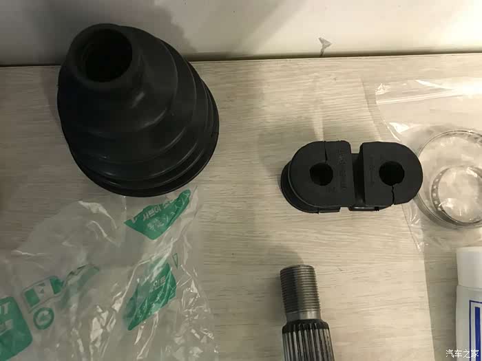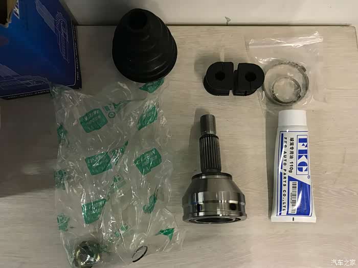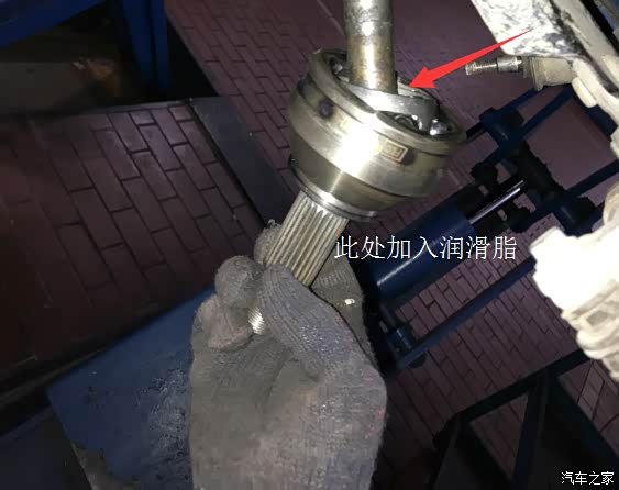 先试装新的万向节 看花键是否匹配,确认无误后,开始抹上润滑脂安装