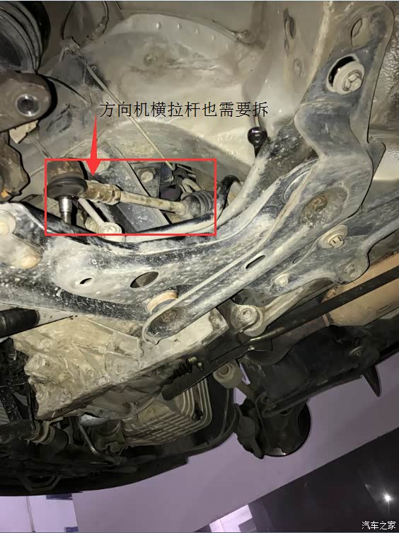 接下来开始换平衡杆衬套,松开元宝梁的几颗大螺丝才能拆卸平衡杆衬套