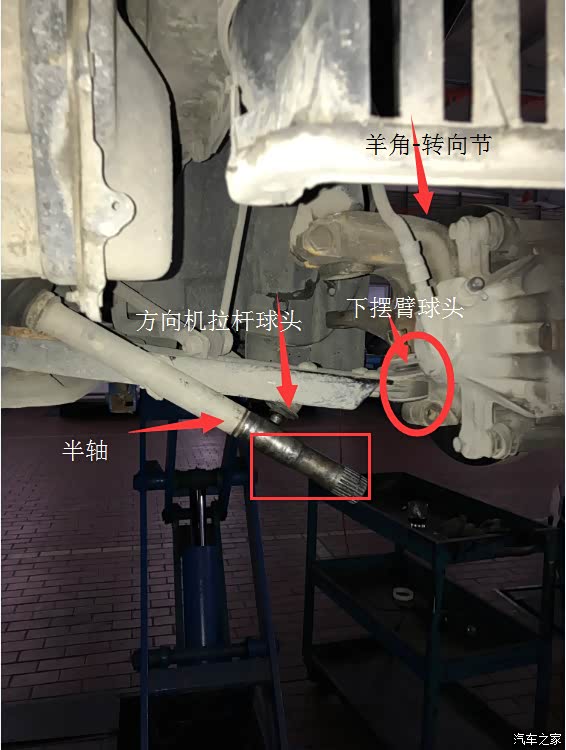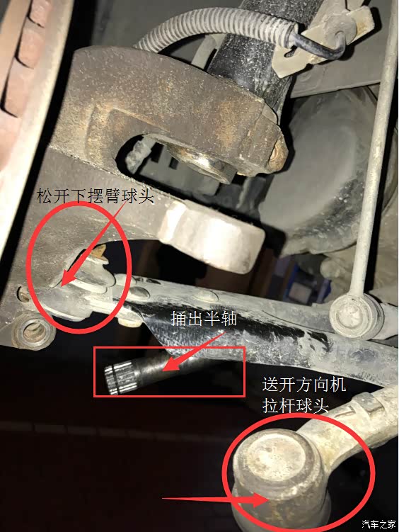 松开摆臂球头,方向机拉杆球头,半轴螺母
