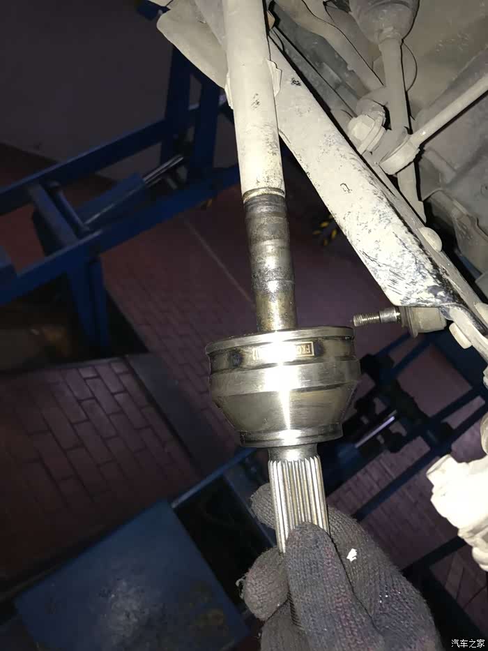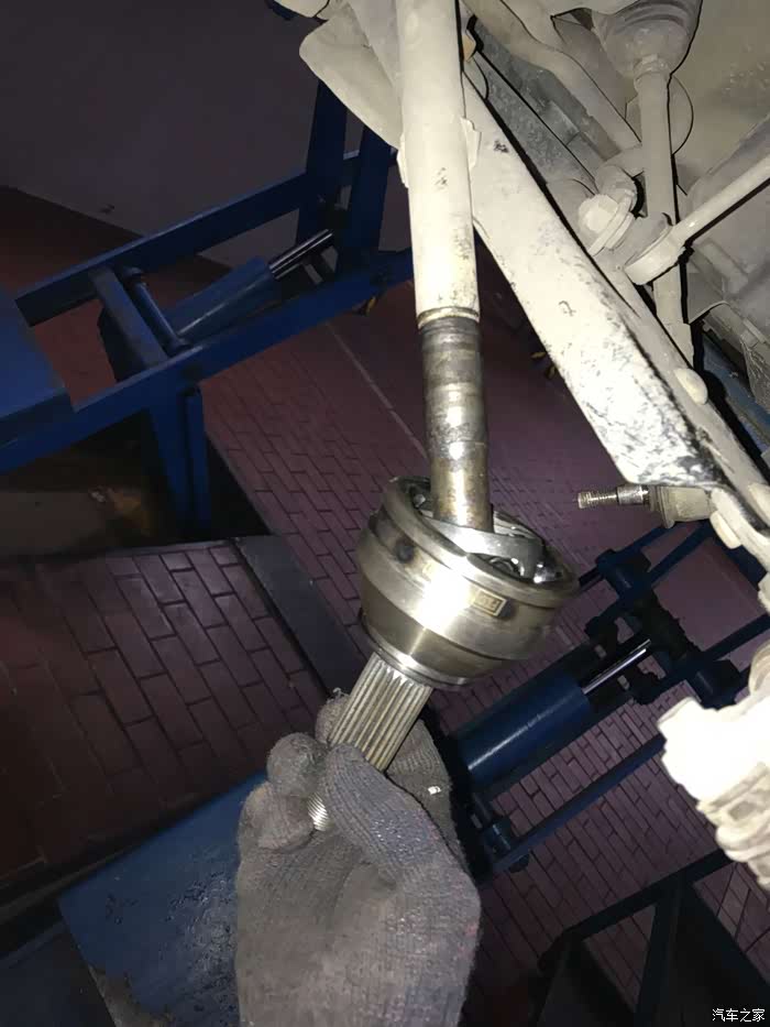 取出半轴,单手操作不方便,图片拍的比较少,这里的旧万向节已经取下