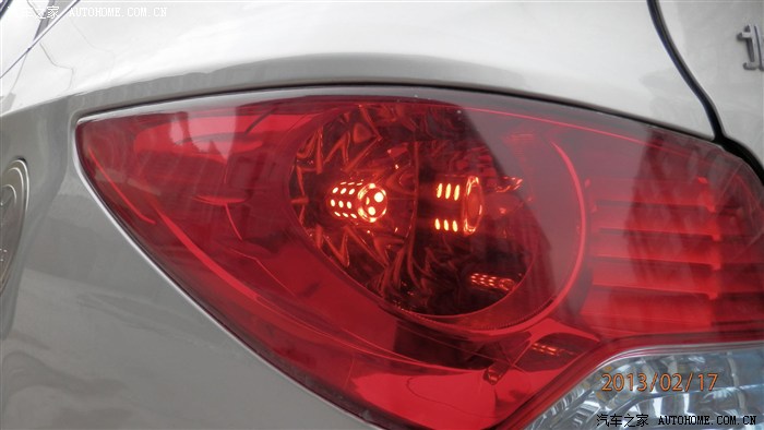 正面~~这里还得解释一下这个亮度,就我一个人,没人帮我踩刹车,所以只能照行车灯的亮度了!这个亮度我再形容一下吧,现在开行车灯是30%的亮度,刹车踩下去后就是100%的亮度!行车灯打开后,灯罩里全是红色星星,相当漂亮!