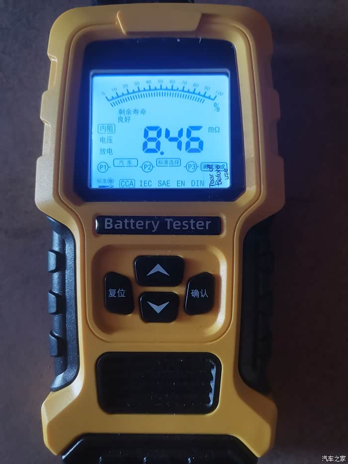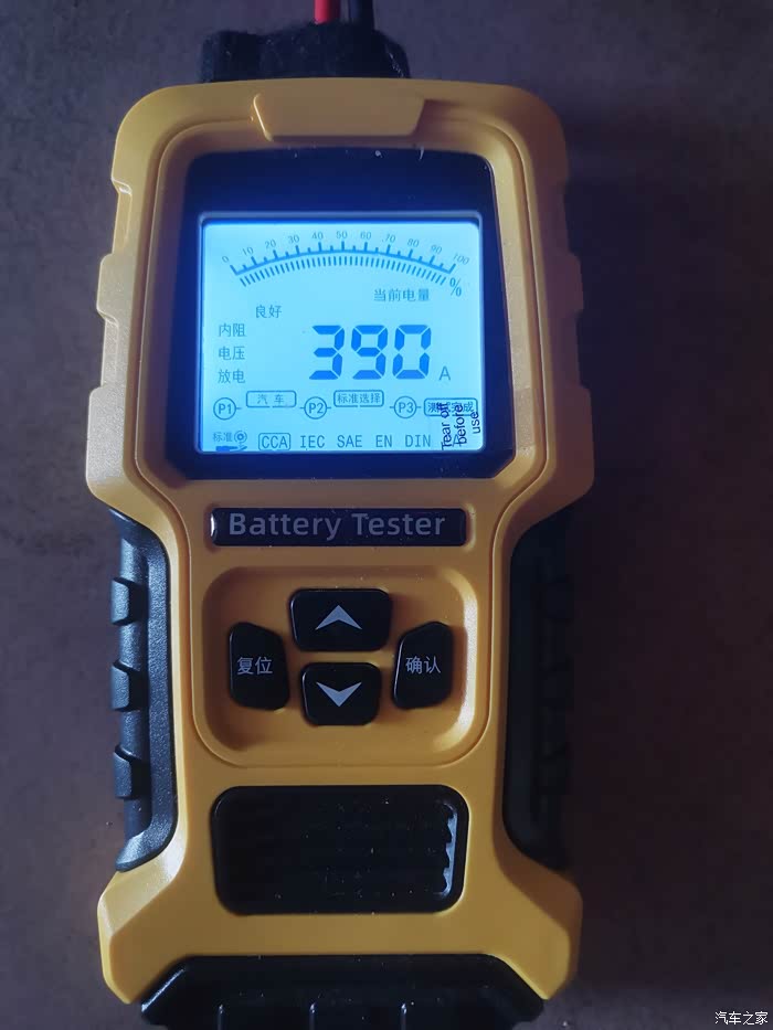 电池品牌巡航,容量68安培,冷启动电流405安培,生产日期2019年,最近老是不好点火,用容量仪测试寿命40%容量266安培.提示更换电池。