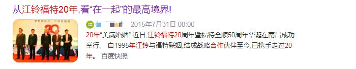 福特和江铃可谓是当前时代下合资企业的典范了。1995年,江铃以ADRs发行B股的方式,与福特达成了战略合作伙伴的关系。自此,两家企业便开始了长达二十五年之久的共同战略缘分。