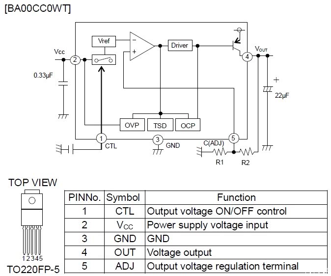 图18:BA05CC0WT的模块图及引脚图