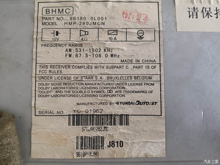 那么再来看看第二个方案,支持平衡输出的机头长啥样。御翔96370-3K200功放原配的CD机是96190-0R050。重点看【OUTPUT:10KΩ】,这类机头也被称为哑巴机,因为没有功放级(后面没有散热片,也是区别哑巴机的重要标记),直接接喇叭音量很小。可是居然这些都快成年(18岁)的老机器,很多没AUX,没USB,没蓝牙,有些商家很有胆的挂着不可思议的高价在卖,我觉得这货最多就值100块。为啥,一个4Ω的机头,AUX,USB,蓝牙都有,50块满大街。所以那些拆车JBL和BOSE的功放中几乎绝大多数是平衡输入,单独买功放有明显的坑,一般新手还是不要折腾了。如果实在迷恋两大牌拆机功放,连配套CD机头一起买,一定要保证没有底噪,还有要能顺利装在自己的车上。采用SPDIF数字信号输入的功放,因为四代胜达不确定能否支持该数字信号的输出,也请大家慎重选择。