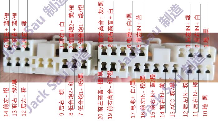 我查了国外一位加拿大网友提供的音响维修手册中96370-0A200的线路图和线序,原始资料中是带线颜色标记的,跟我手上这个御翔拆机线做了Double Check是匹配的。