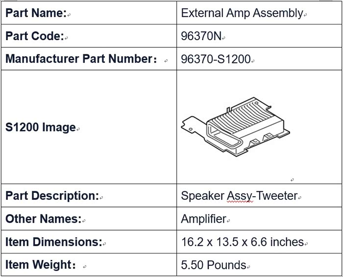 图3:美版2020四代胜达功放版原配96370-S1200型号【注意】接SPDIF数字信号输入的外置功放需要进工程模式更改输出设置