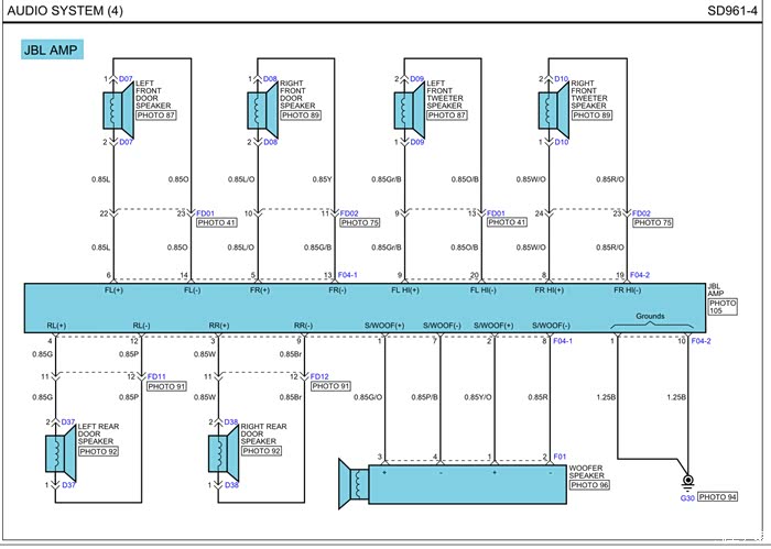 图24:美版2005 Hyundai Sonata的96370-0A200 JBL 功放接线图