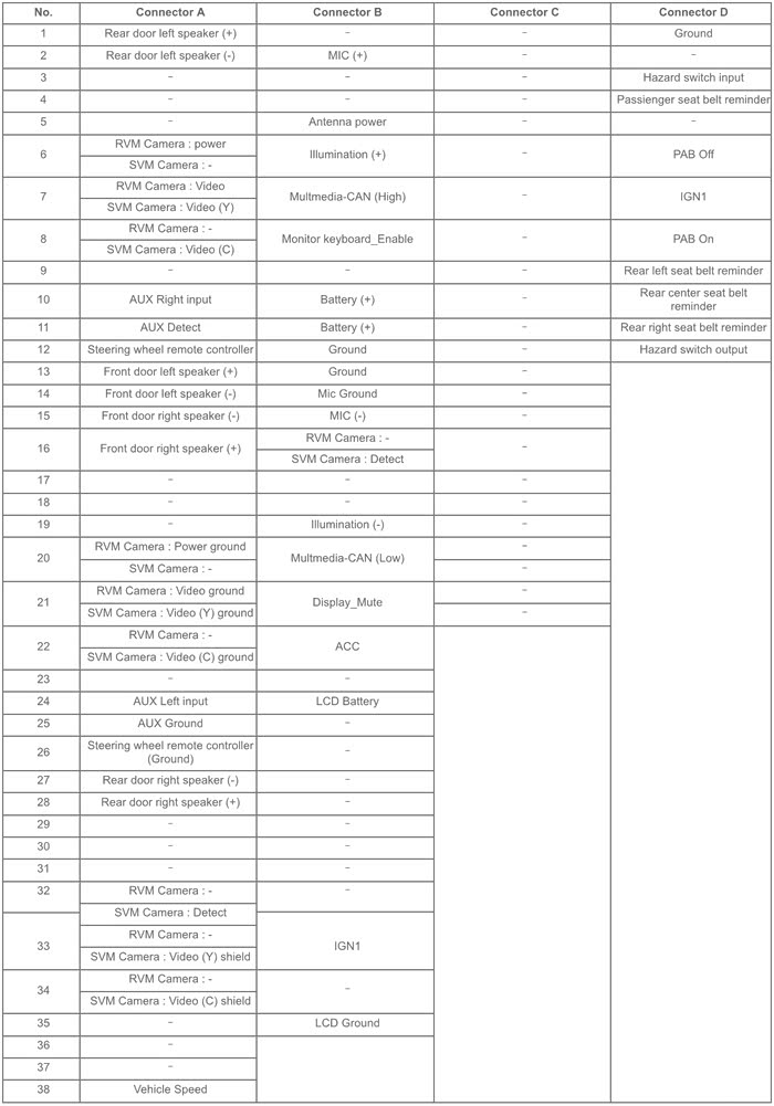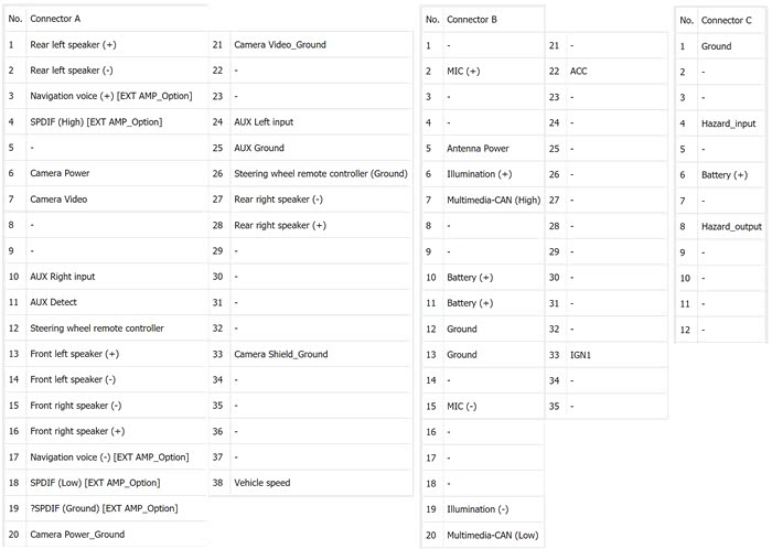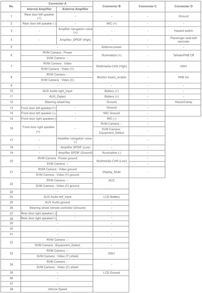 图36:美版KIA Stinger 2018+ 导航版线序