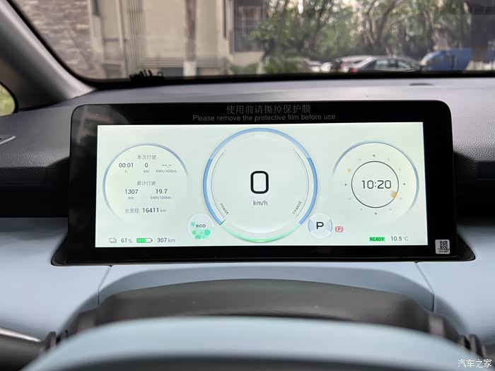 我们可以按住P档不放,一会仪表就会显示关于断电的提示,我们继续按住,这样整车就可以断电,这个跟熄火类似的。比如我们坐车里休息不用用电的话,可以这么操作。