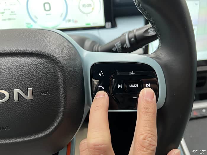 我们只需按住方向盘右侧的蓝牙电话和下一首切歌按键,
