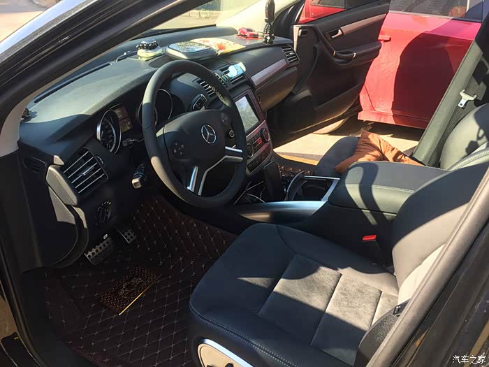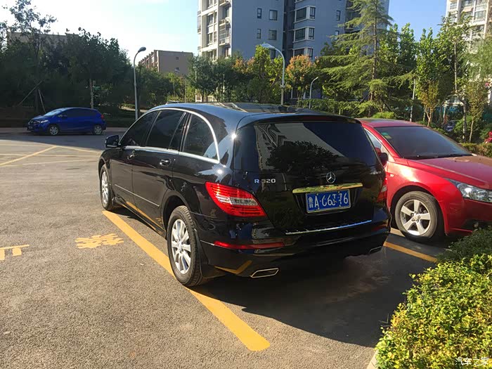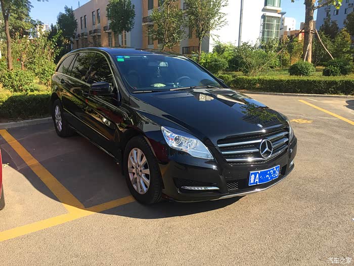 这时换车的事宜被推上日程,真所谓众口难调,一点也不假。孩子的意见只要是七座的,他俩能有自己单独的座位就OK了,至于什么车他们不会也不懂要求太多,剩下的四个大人,一人一个意见。选车的历程从国产的七座车,到商务车,到SUV七座车,奇瑞、GL8、汉兰达、锐界、道奇、发现神行、XC90、Q7、、、考察了得有半年多,迟迟做不了决定。最主要原因在于父亲的奔驰情结,一直想换辆奔驰,可奔驰七座的除了大R就是大G了,新E上市后,各个方面都得到全家人的认可,可还不是七座的啊,要想坐的舒服出门还得开两个车,陪父亲在4S店看车时,正好来了一辆大R新车,停在E旁边,显得魁梧无比,格外耀眼,新E和大R的钱也差不多,最终还是出于家人的考虑决定定大R了,几经周转,托各路英雄好汉的帮衬,今年8月提了一辆黑外黑内的R320商务型,全部办完60W+,包括裸车和一年保险和全车内饰,啥都没了。当时的价格在济南算比较低的了,据说现在再提还能再便宜5K-8K,不爽。。。。