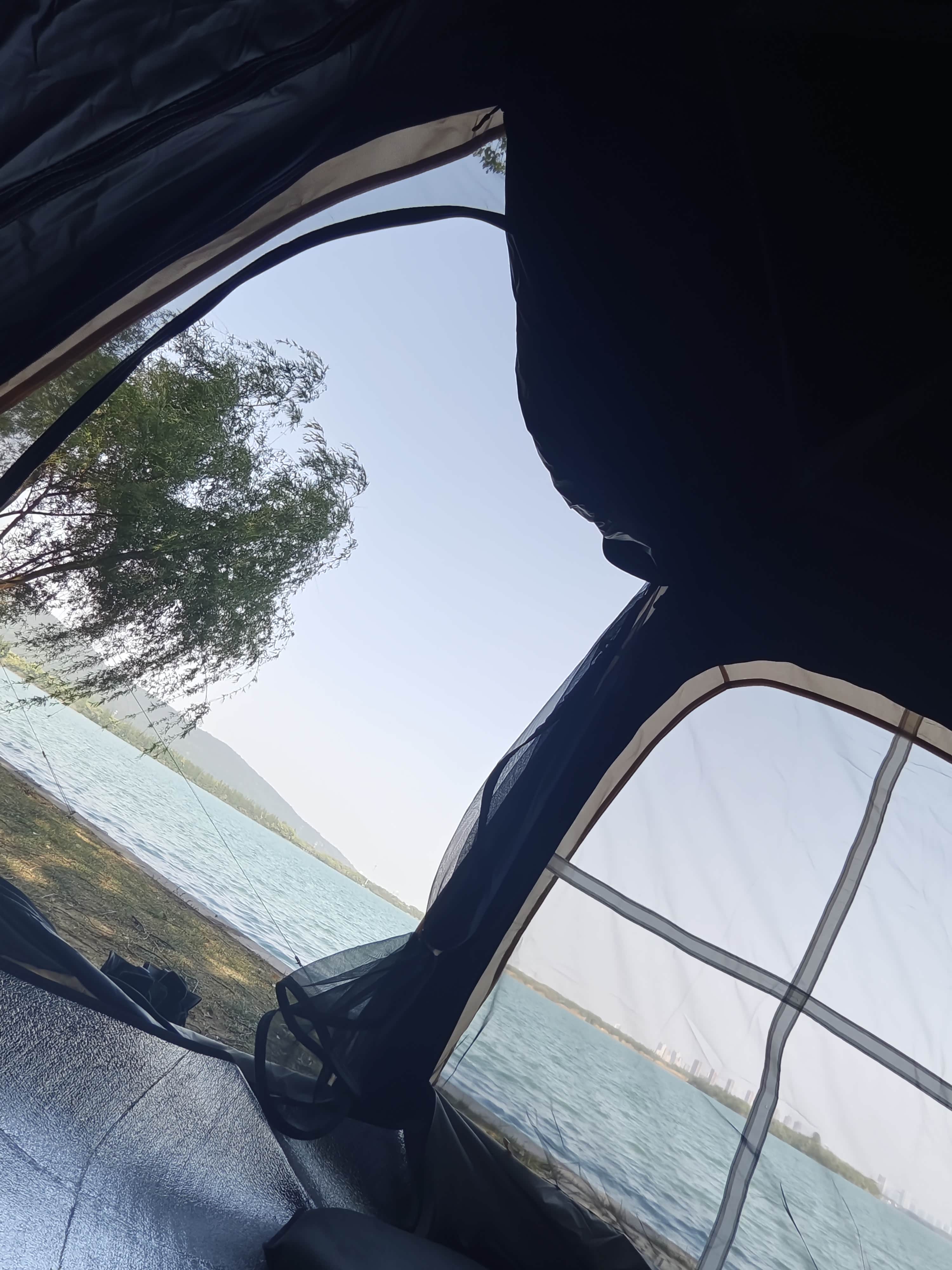 选择一处面向海啊湖啊河啊的水岸边,支起个天幕,整个带天窗的帐篷⛺,雏形就这么愉快的撑起来了。