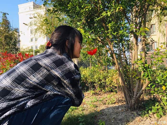 走到相反的道路来到了阳光下,看见了一朵花,只有一朵所以格外亮眼,果然,在阳光下整个人的心情是特别好的,很舒服很光亮